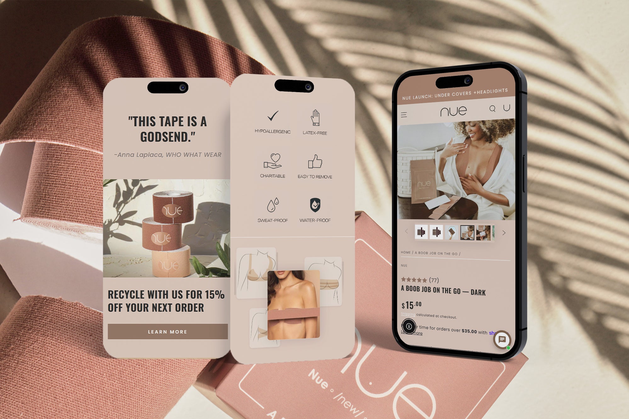 Nue approached DefineMe after facing challenges with a previous web developer, seeking a reliable team to build a high-performing Shopify website. They needed a digital presence that would effectively reflect their commitment to inclusivity and innovation while increasing visibility and engagement with a diverse audience.