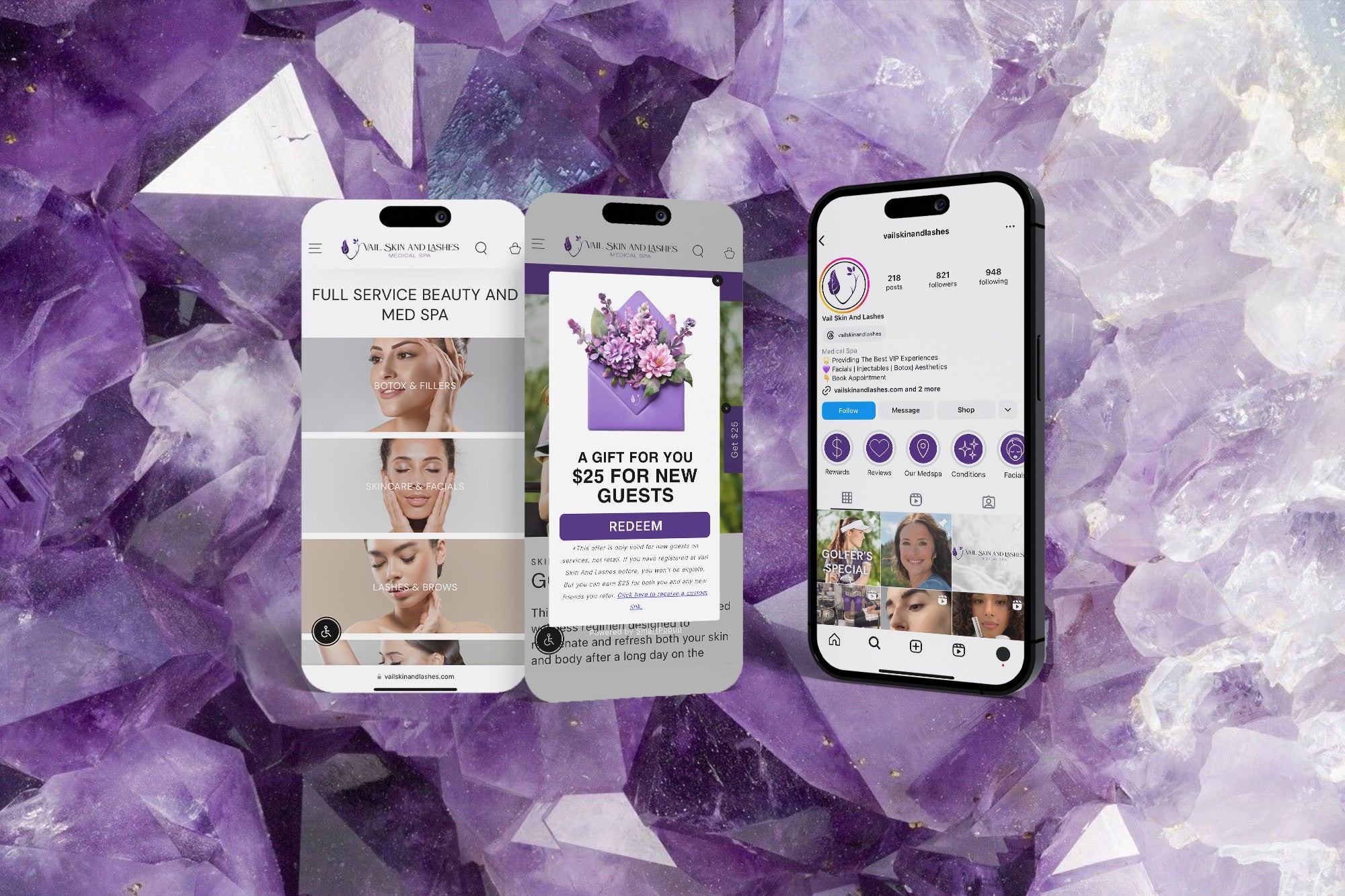 We delivered a complete rebrand for Vail Skin And Lashes, creating a new logo, visual identity, and brand aesthetic that exudes luxury and quality. This refined brand identity helped position the business as a standout in the upscale Vail market.